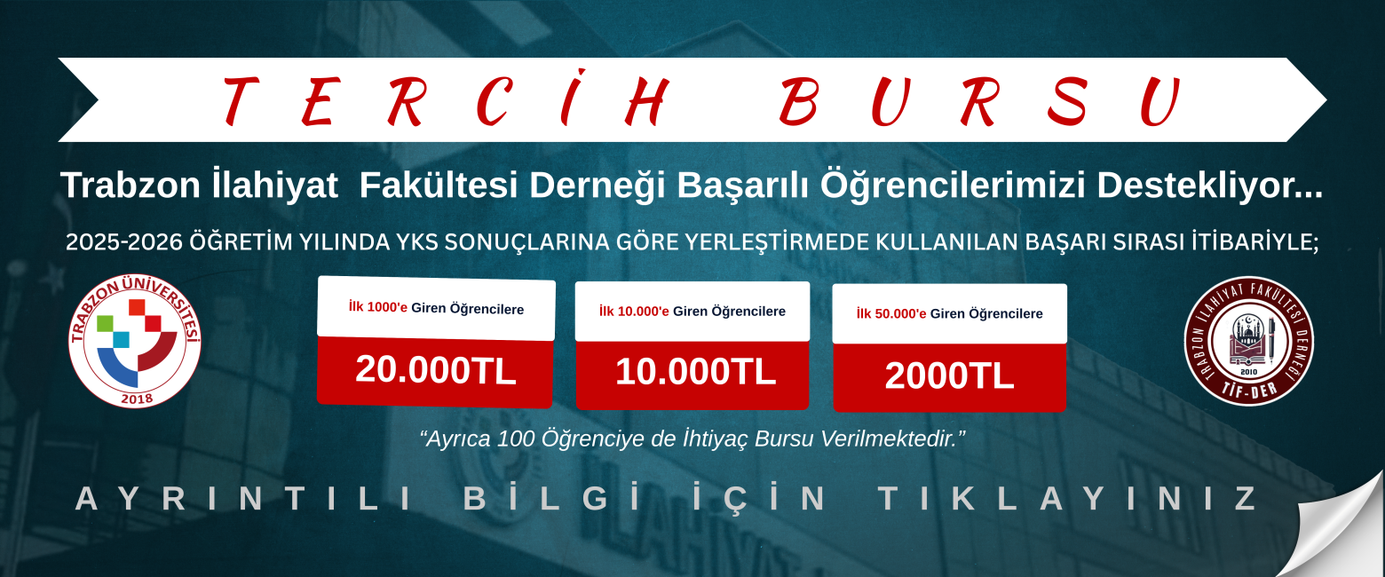 Trabzon İlahiyat Fakültesi Derneği olarak, öğrencilerimizin eğitimine katkı sağlamak, akademik ve sosyal projeleri desteklemek için bağışlarınızı bekliyoruz. Siz de ilme ve irfana destek vererek geleceğin ilahiyatçılarını yetiştirmemize yardımcı olabilirsiniz. Küçük bir katkı, büyük bir değişim yaratır!